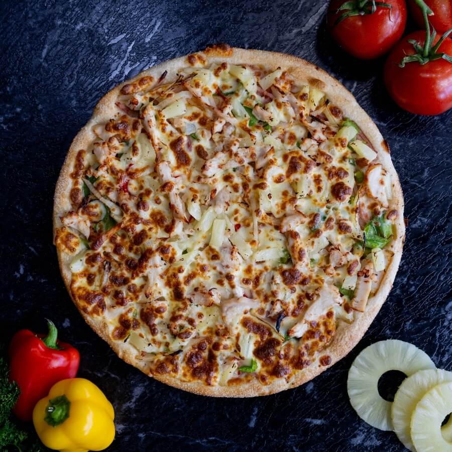 Chicken with ham, capsicum, onion and pineapple served on our signature tomato sauce base. + Enhance it with an Aioli Swirl from $2.5