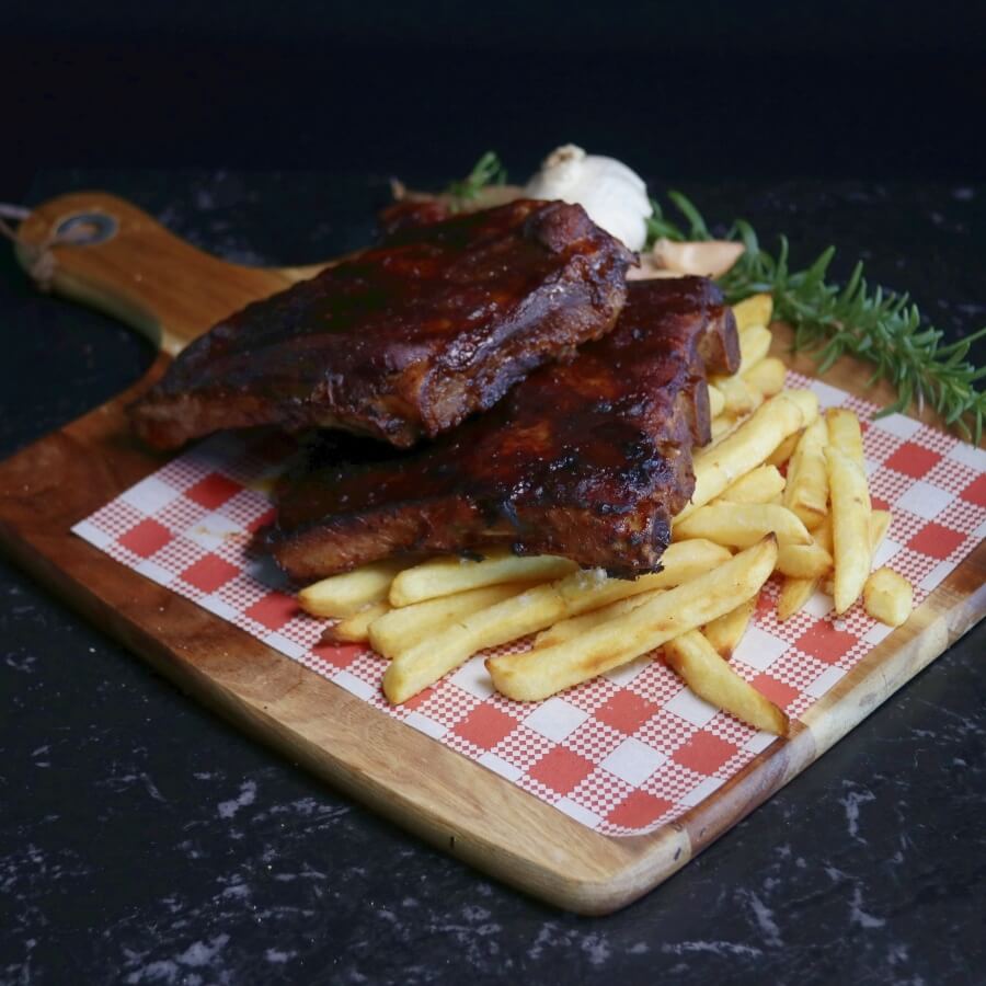 Marinated in BBQ Sauce and rubbed with our secret Texas glaze.