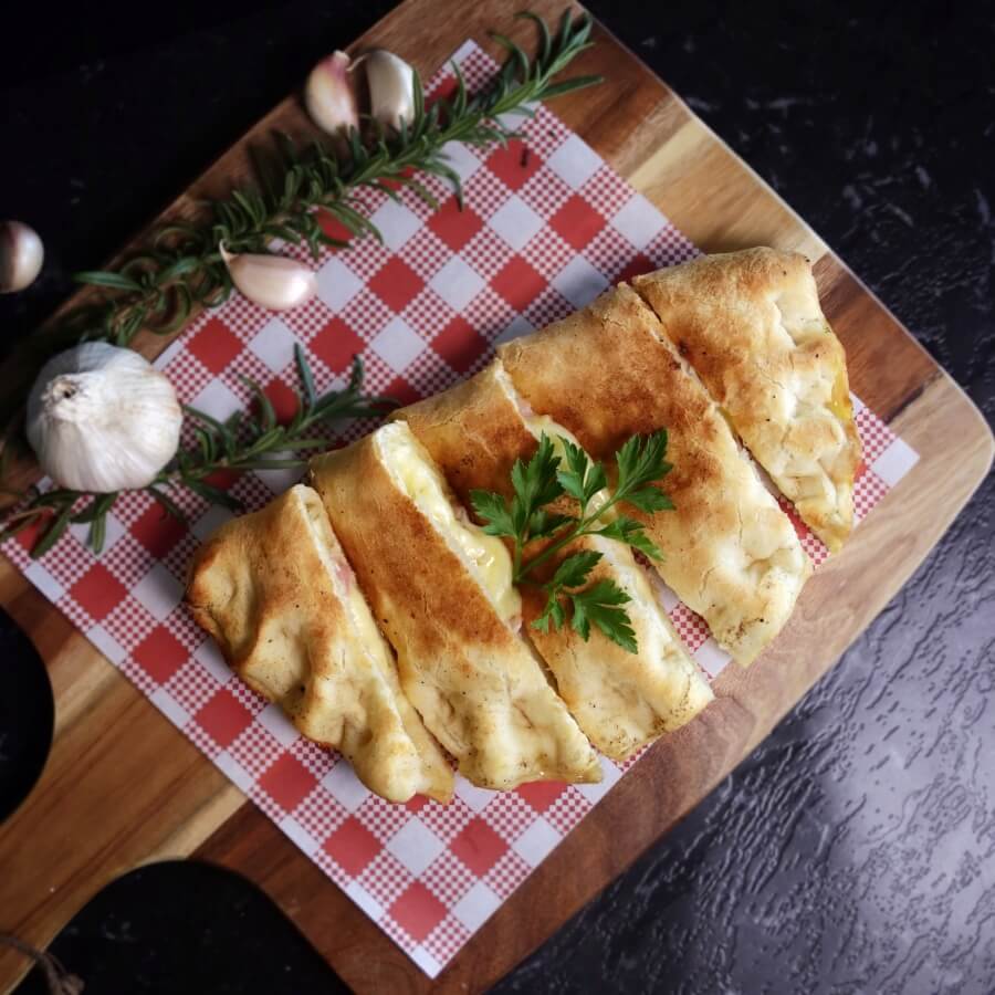 Marinated garlic prawns with pulled beef, onion, capsicum and extra garlic served on our signature tomato sauce base and finished with a hollandaise swirl and a lemon wedge.