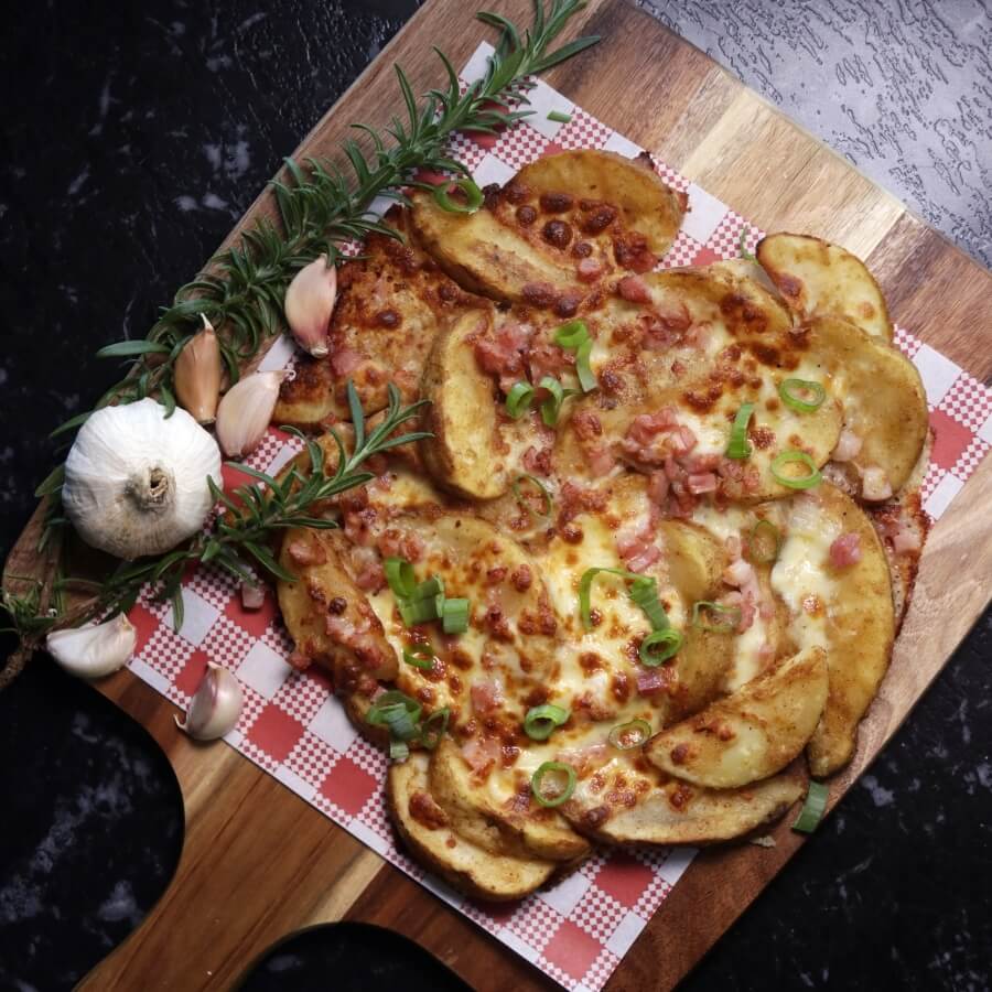 Chicken with diced bacon, parmesan, fresh mushroom, onion and capsicum served on our signature tomato sauce base and perfectly finished with a garlic aioli swirl + Make it extra Cheesy from $2