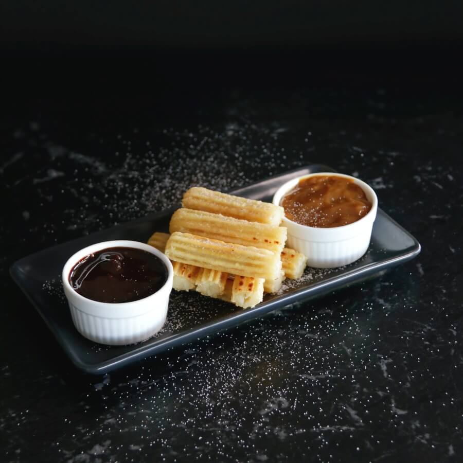 Cinnamon sugar coated Churros served with a choice of dipping sauce.