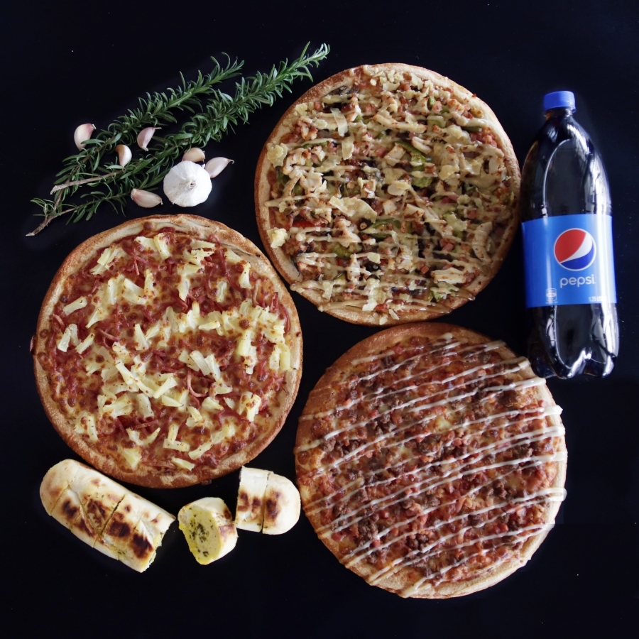 1 Gourmet pizza, 2 Traditional pizzas, 1 Garlic Bread, 1 x 1.25lt drink *Optional $5 GF bases Online only deal